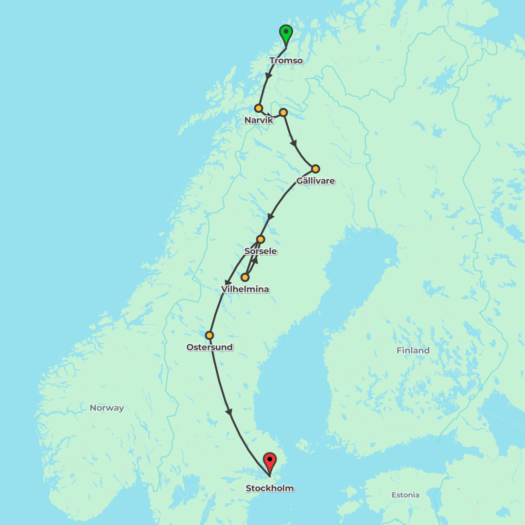 Journey from Tromso to Stockholm by scenic rail, with Arctic hikes and Sami culture enriching this northern adventure.