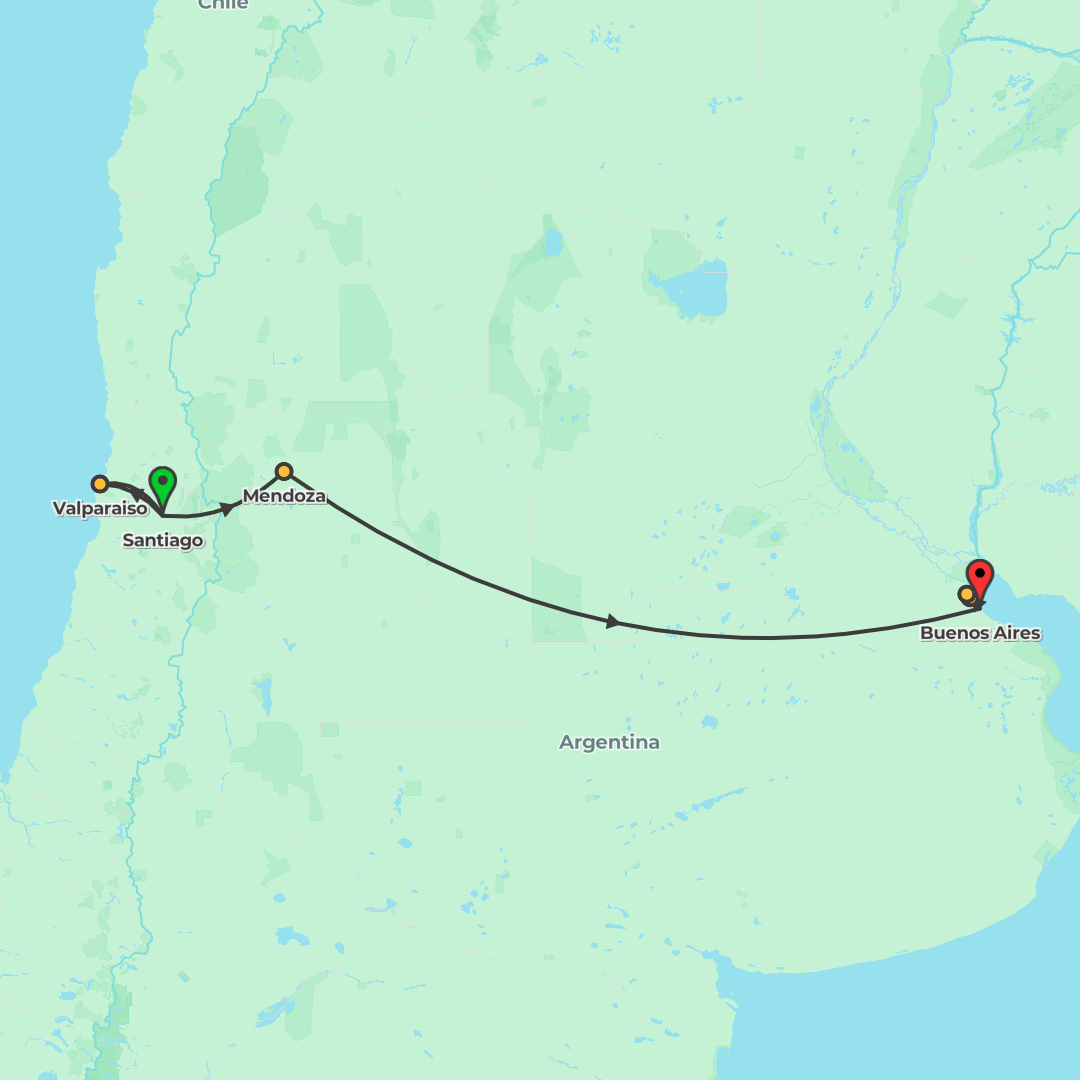 Discover Santiago and Valparaiso, sip wines in Mendoza, and explore Buenos Aires’ Tigre Delta on a premium journey across Chile and Argentina.