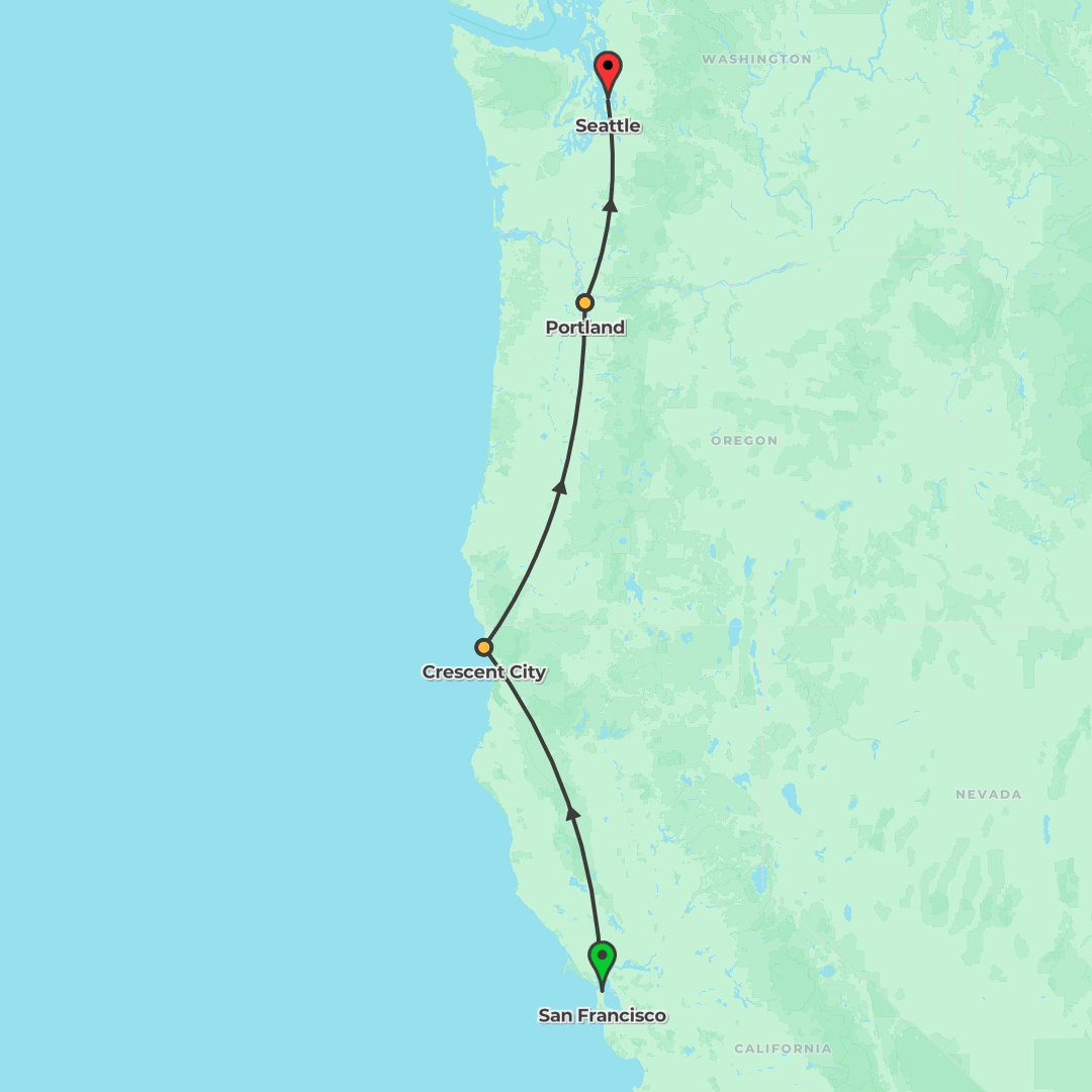 Traverse the Pacific Northwest from San Francisco to Seattle, taking in Redwoods and Crater Lake, Portland and the Columbia River Gorge, Kalaloch Beach and the Hoh Rainforest with leader-led walks, sc