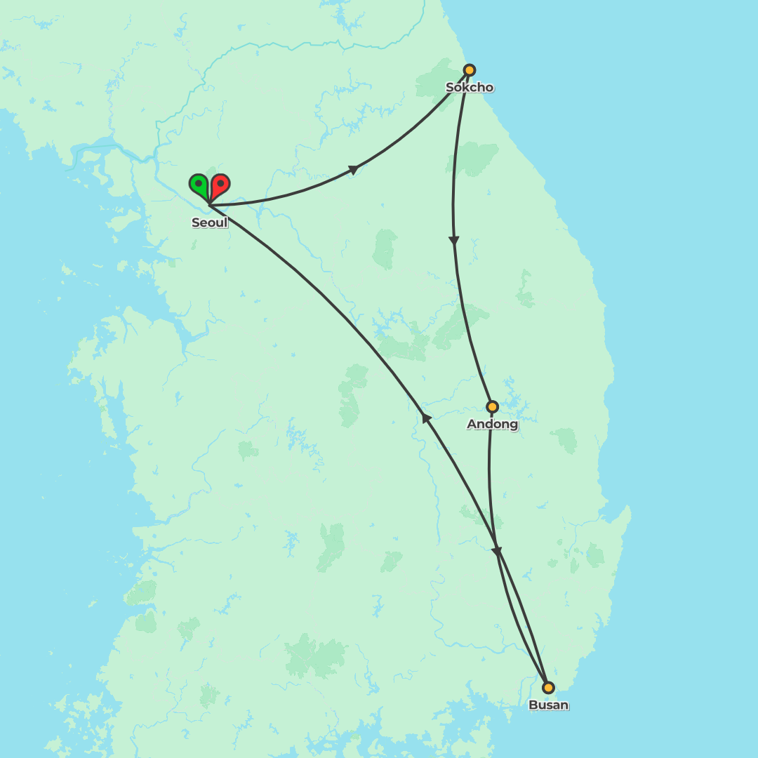 Experience South Korea’s highlights, blending Seoul’s culture, coastal scenery, traditional village life and unforgettable food, with a unique night in a Hanok and time in Busan.