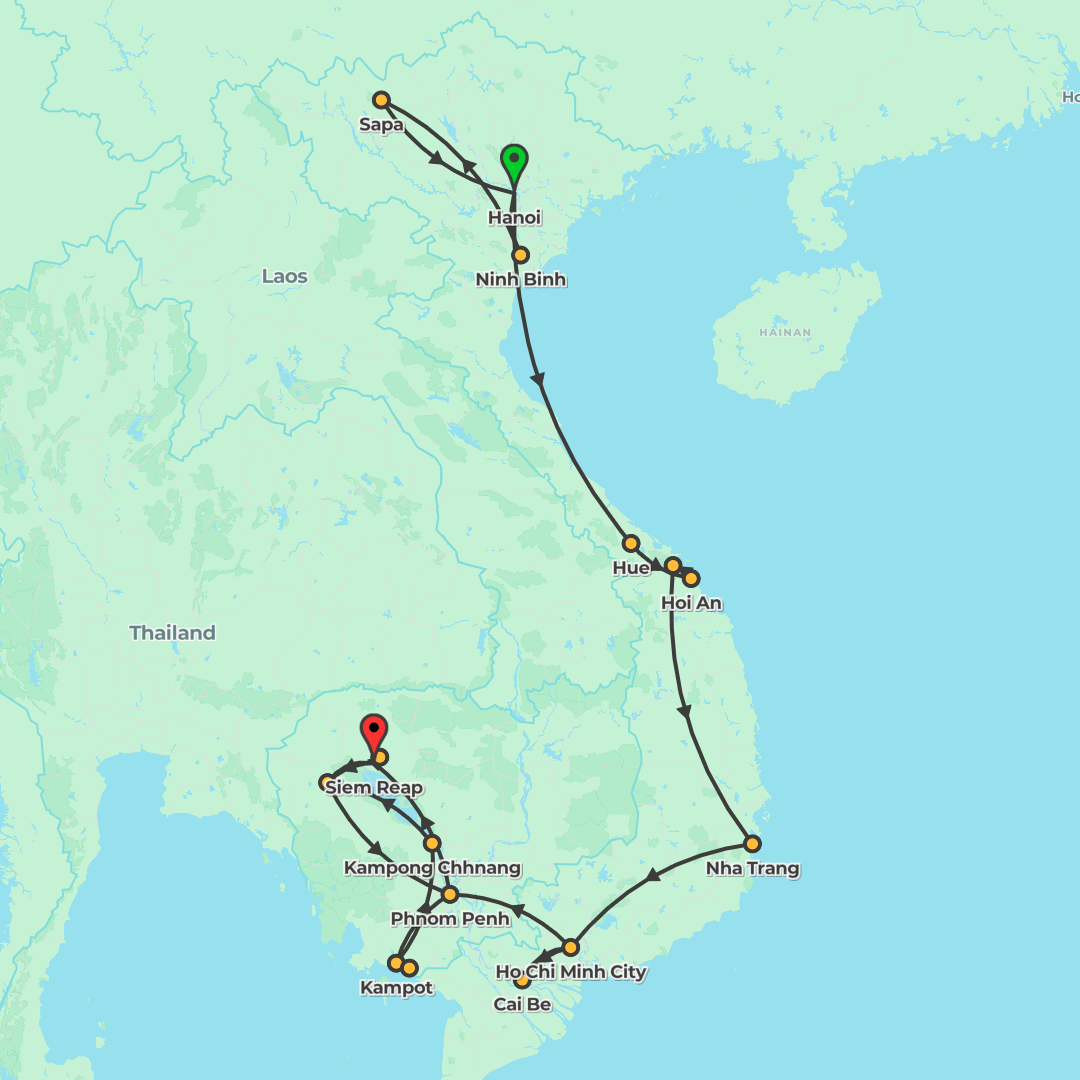 Discover Vietnam and Cambodia from Hanoi to Phnom Penh, combining city highlights, a Halong Bay cruise, cultural encounters and convenient flights between key destinations.