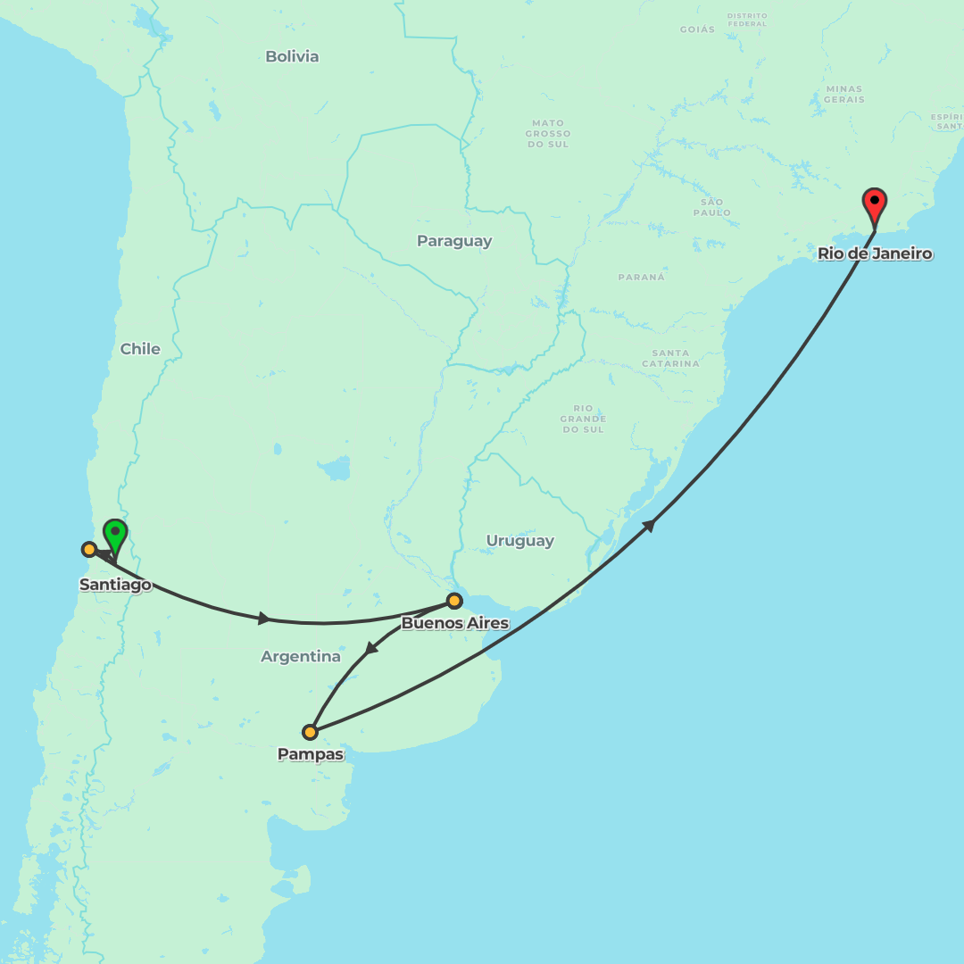 A luxurious journey from Santiago to Rio de Janeiro, exploring Valparaíso, Buenos Aires and Iguassu Falls with iconic hotels, curated dining and Local Experts.