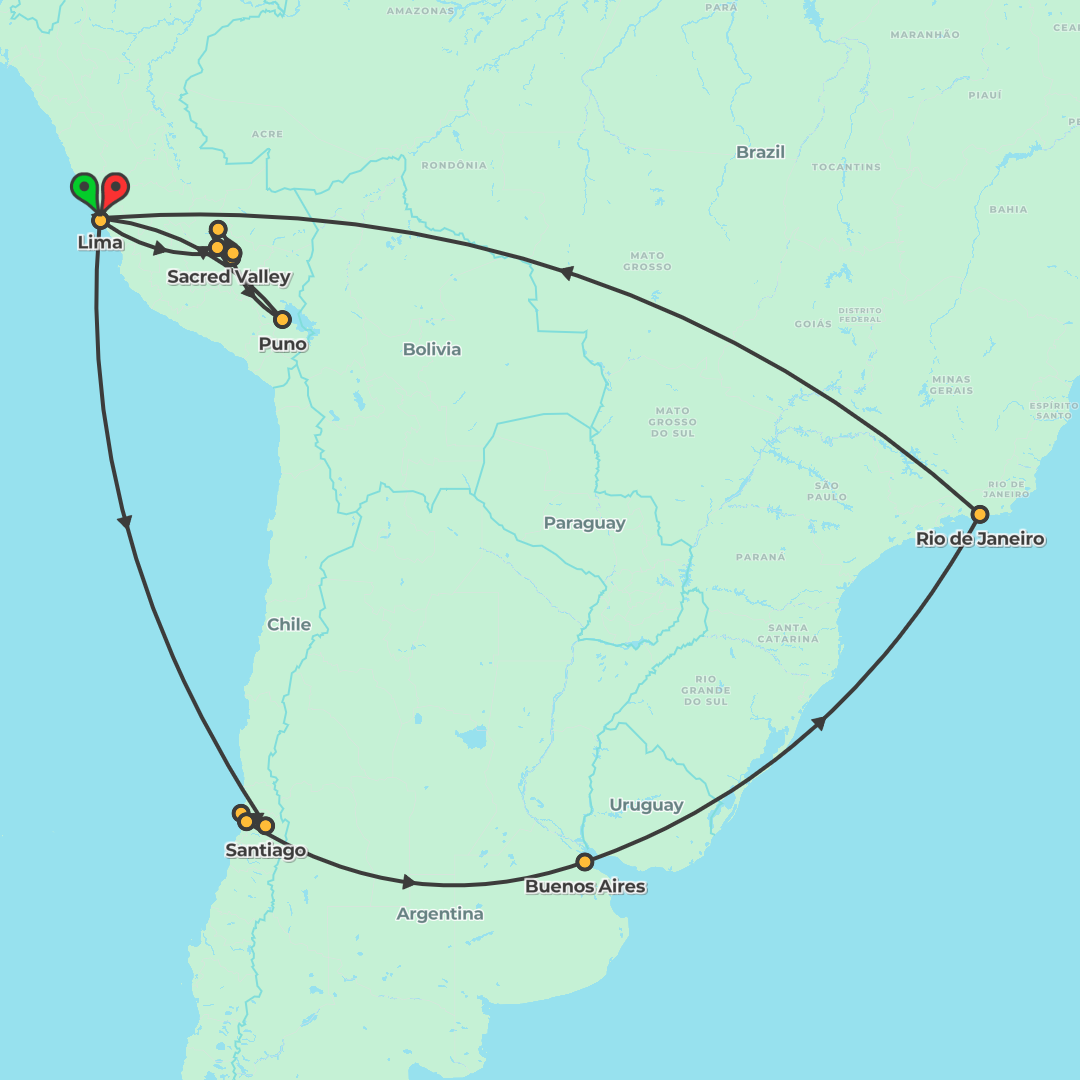 From Rio’s beaches to Iguazú Falls, Buenos Aires and Peru’s Inca heartland, this fully guided journey blends iconic sights with local flavors and meaningful cultural encounters across Brazil, Argentin