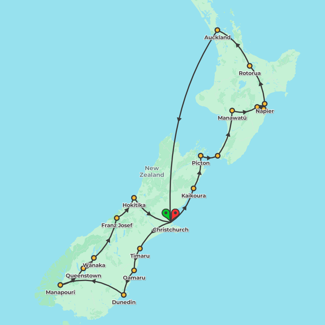 Journey from Christchurch to Auckland discovering South and North Island icons, with scenic drives, an included Milford Sound cruise and cultural experiences along the way.