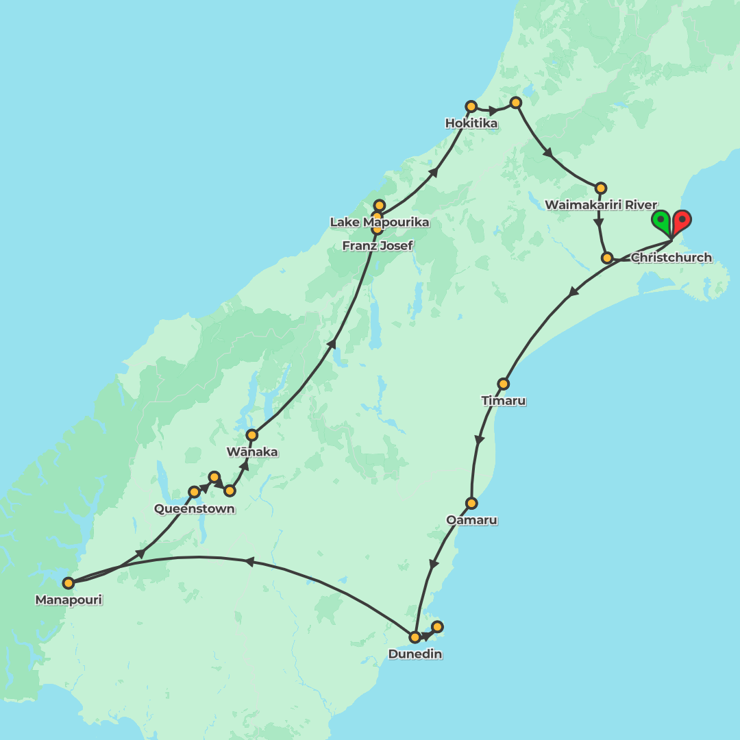 Discover New Zealand on a southbound adventure from Auckland to Christchurch, blending cultural highlights, wildlife encounters and free-time thrills across cities, lakes, volcanoes and coastlines.