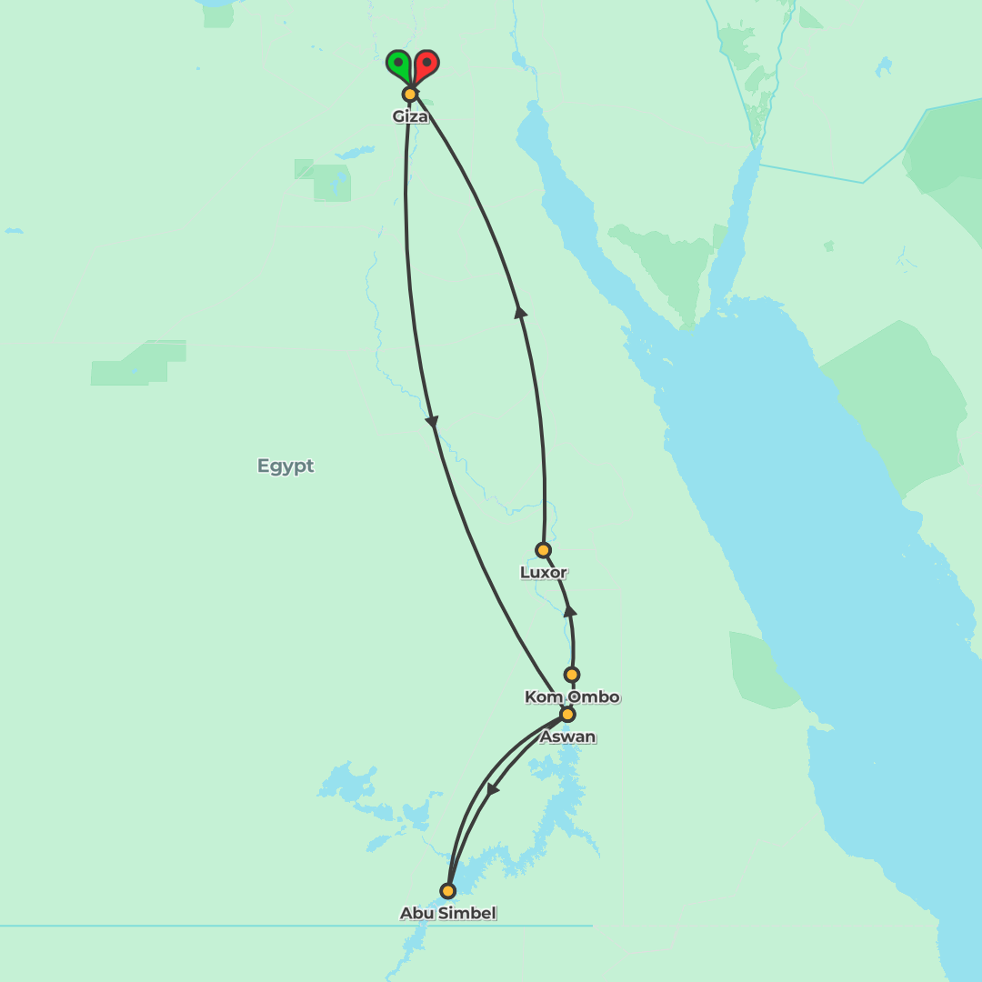 Explore Egypt’s most iconic destinations with a journey that begins in Cairo, continues to Alexandria, and travels along the Nile to Luxor, Aswan, and Abu Simbel.