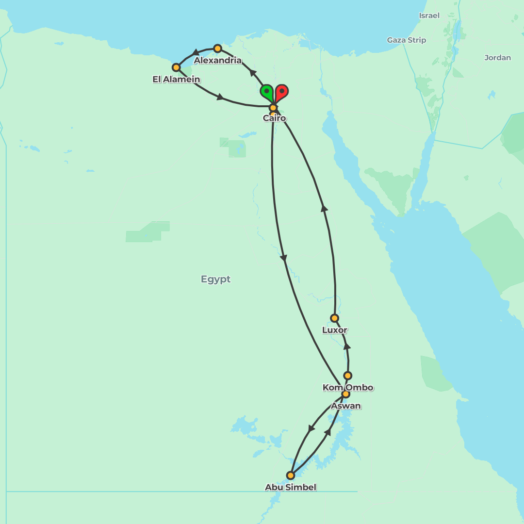 Explore Egypt’s highlights from Alexandria to Luxor on a 13‑day small‑group tour featuring the Pyramids, El Alamein and a 5‑star Nile cruise, escorted by an Egyptologist guide.