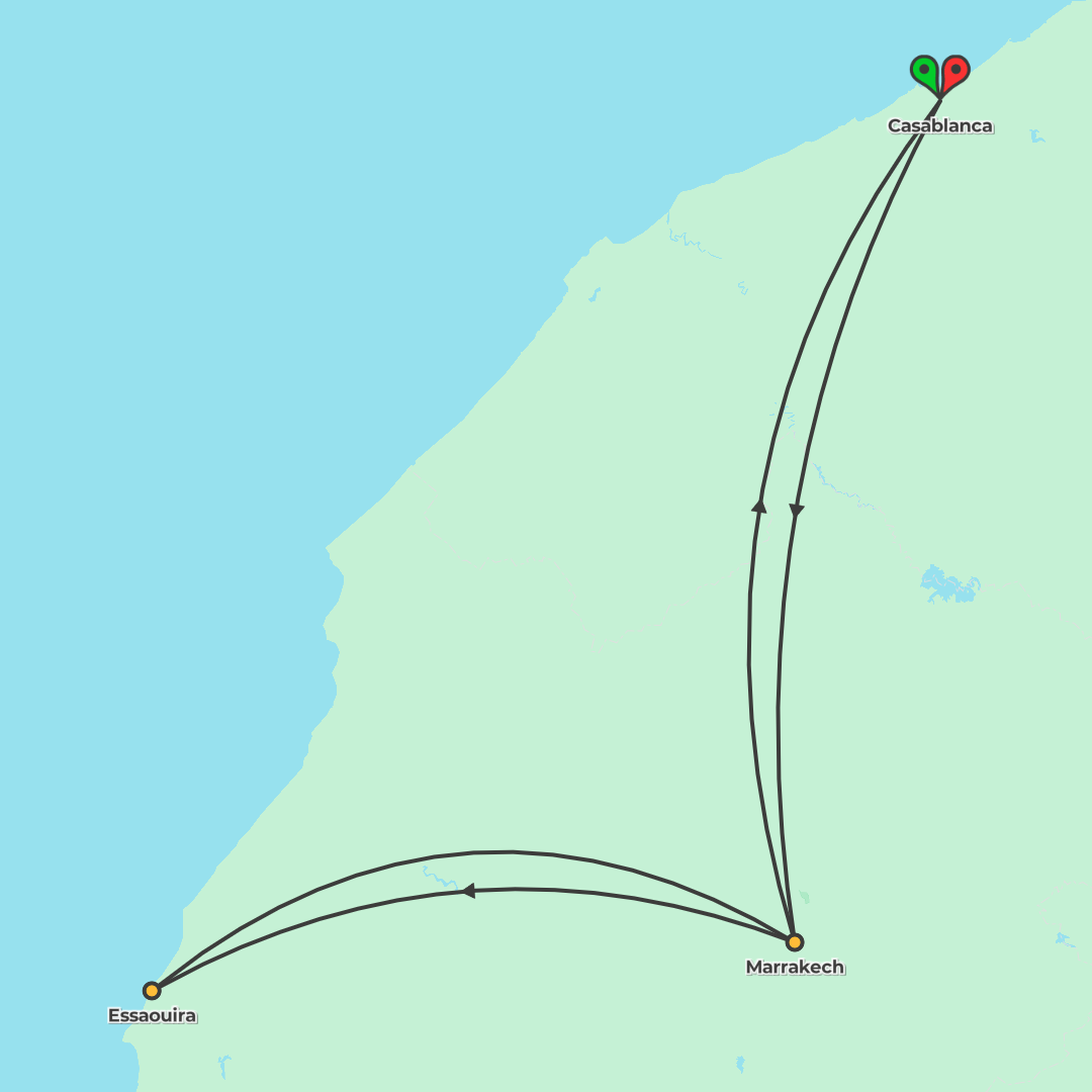 Discover Morocco on a 7-day small-group journey linking Casablanca, Marrakech and coastal Essaouira, with guided sightseeing and plenty of free time.