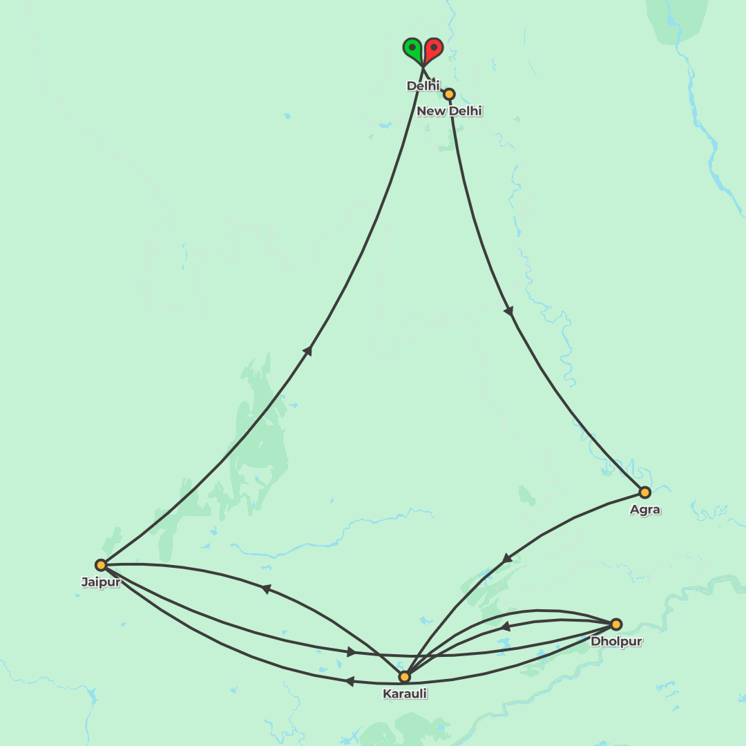 Journey from Delhi to Mumbai on a 14-day group adventure featuring guided highlights, a camel safari in the Thar Desert, and varied transport across Northern India.