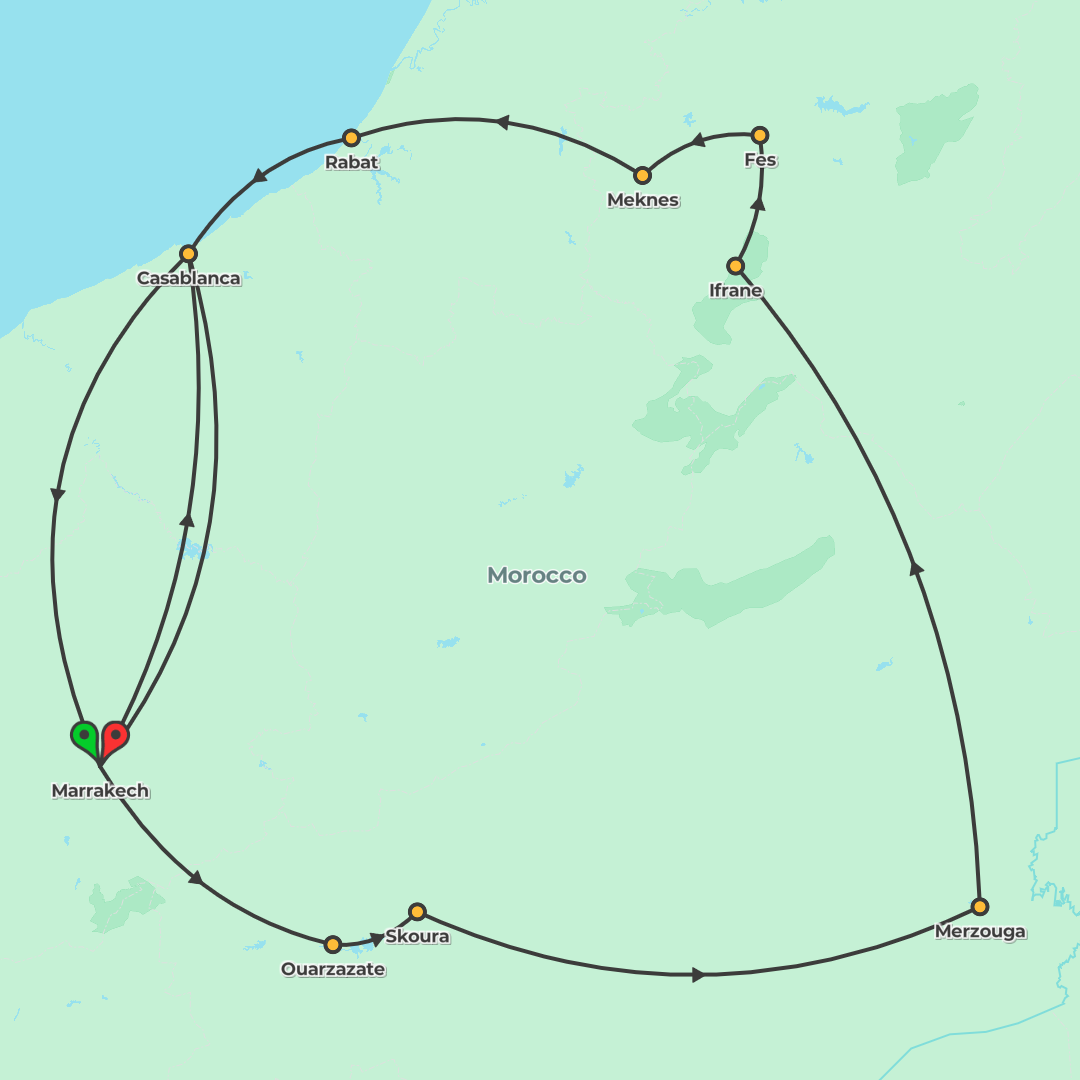 An 11‑day winter journey through Morocco’s imperial cities, desert gateway and Atlantic coast, blending guided sightseeing, authentic dining and relaxed starts.