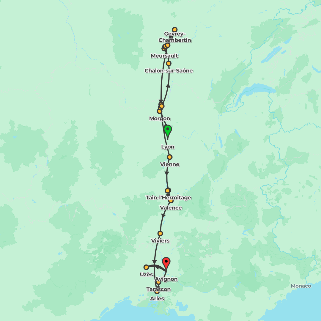 Cruise from Lyon to Avignon through Burgundy and Provence, with guided city strolls, wine tasting, fragrant lavender experiences and Ardèche Gorge scenery, while enjoying five-star comfort aboard a Rh