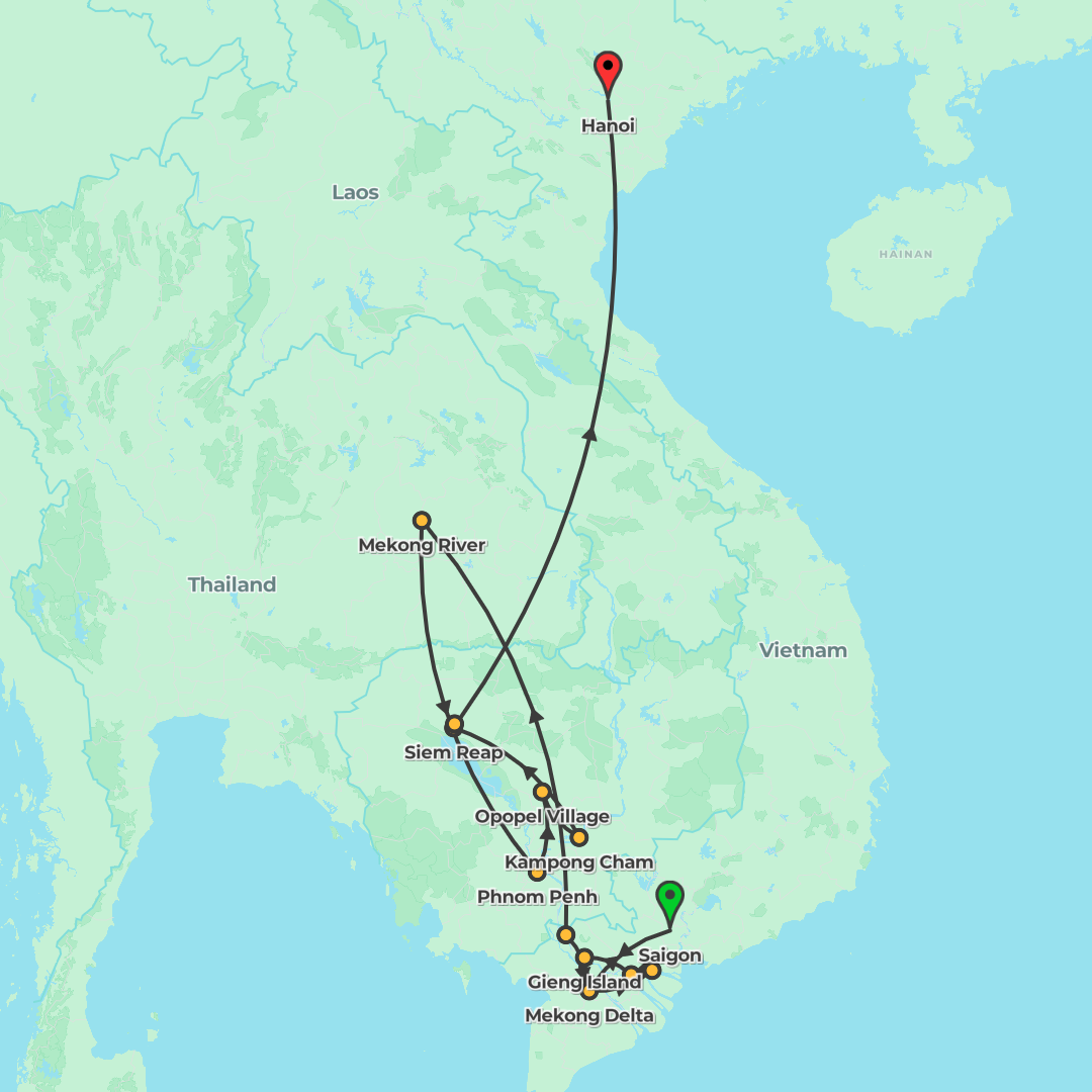 Discover Vietnam and Cambodia from Hanoi to Phnom Penh, combining city highlights, a Halong Bay cruise, cultural encounters and convenient flights between key destinations.
