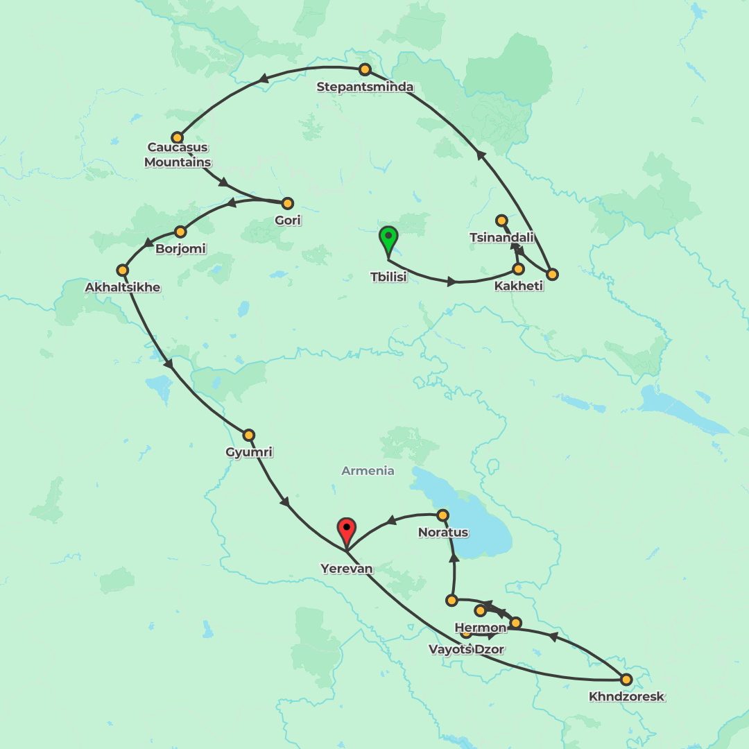 Explore Armenia and Georgia on a small-group journey from Yerevan to Tbilisi, rich with guided city tours, monasteries, wine traditions, and local culture.