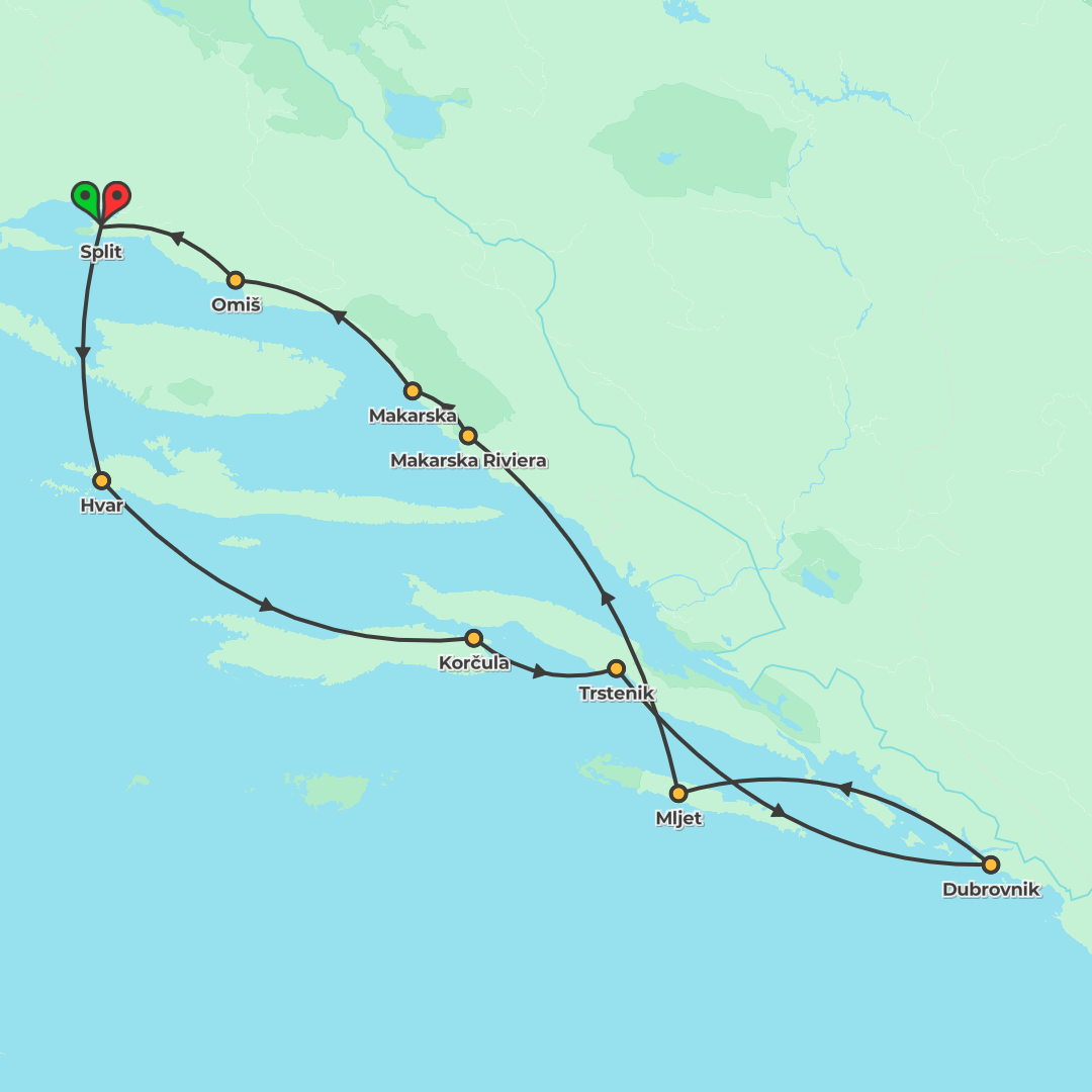 Sail from Split to Dubrovnik over 8 days on Croatia’s Dalmatian coast with island orientation walks, swim breaks, and a guided Dubrovnik city tour.