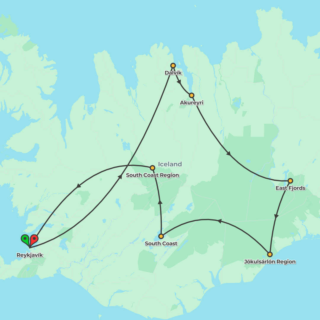 Explore Iceland’s waterfalls, glaciers, geothermal wonders and coastal villages on a one‑week guided journey from Reykjavik through Vík, the East Fjords, Lake Mývatn and Snæfellsjökull National Park.