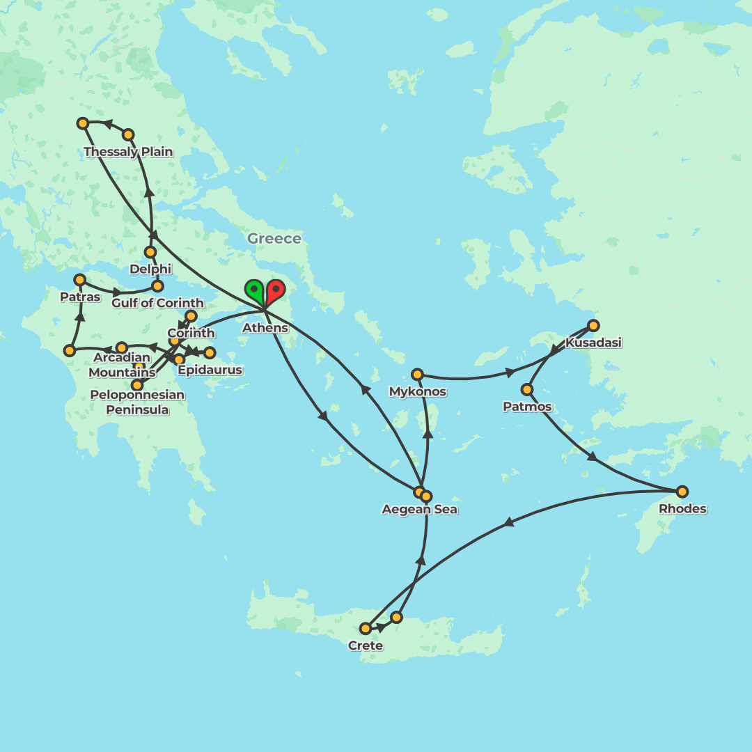 Discover ancient wonders and sun-soaked islands on a 15-day guided journey through Greece and Turkey, combining Athens, Delphi, Meteora and Olympia with an Aegean cruise to Crete, Santorini, Mykonos,