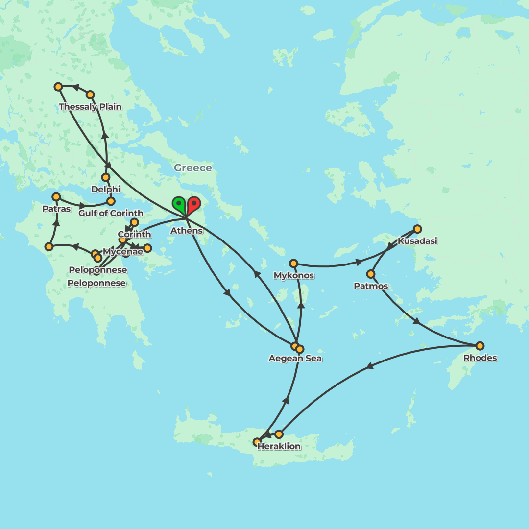 Discover ancient wonders and sun-soaked islands on a 15-day guided journey through Greece and Turkey, combining Athens, Delphi, Meteora and Olympia with an Aegean cruise to Crete, Santorini, Mykonos,