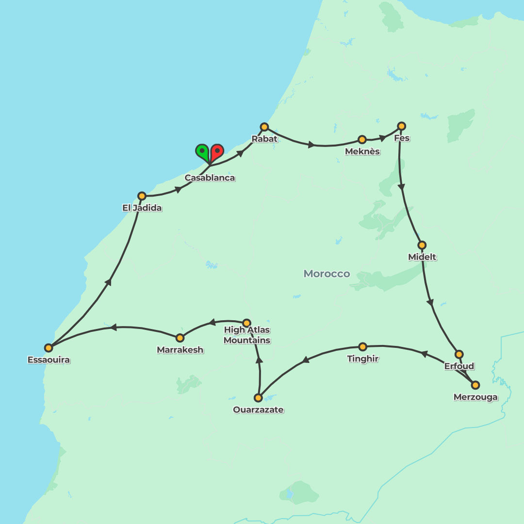 Discover Morocco on a premium journey from Casablanca to Marrakech via Essaouira, combining expert-led city walks, desert and mountain landscapes, and rich culinary experiences.