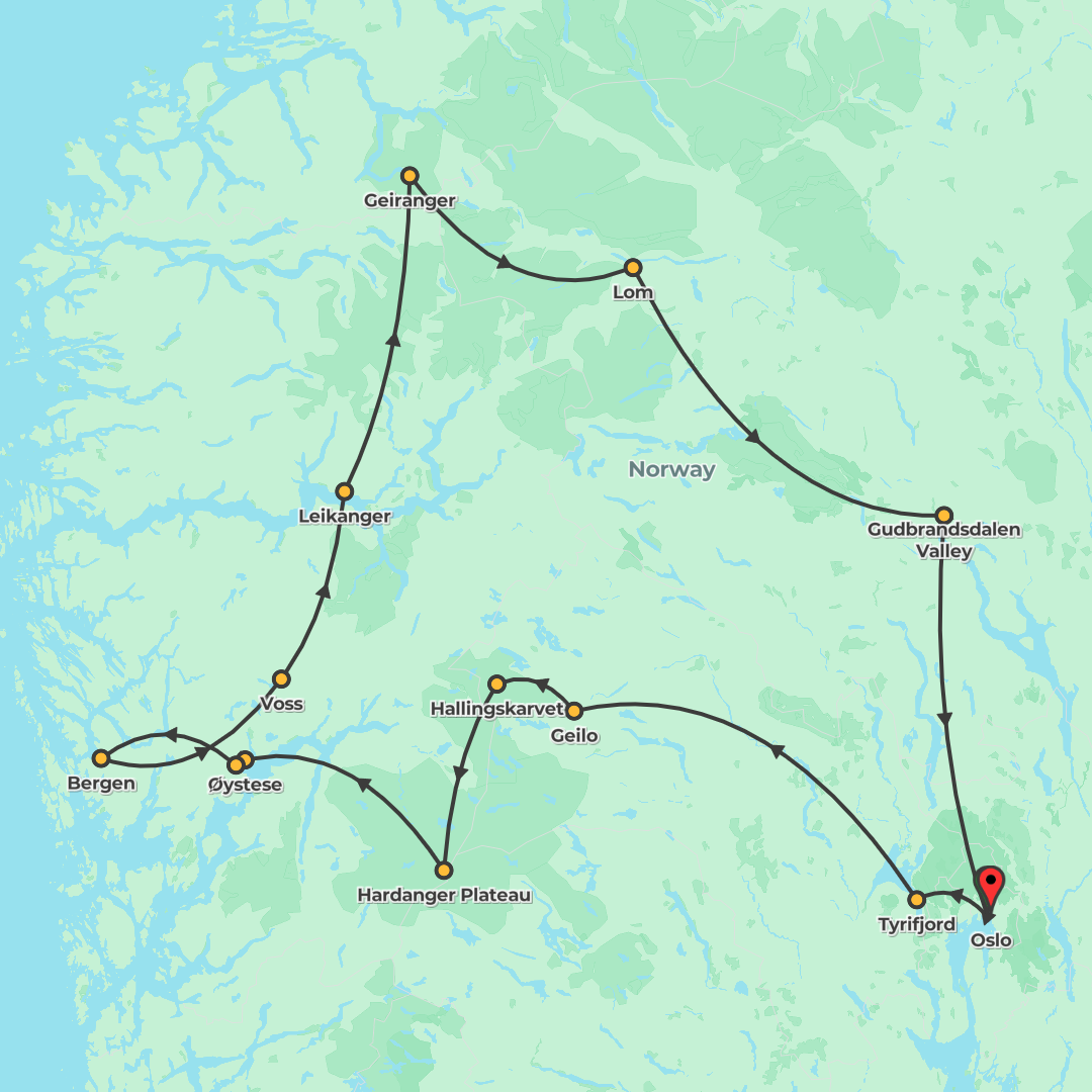 Explore Oslo, Bergen and Norway’s most celebrated fjords—including Hardangerfjord, Sognefjord and Geirangerfjord—on a round-trip from Oslo with expert guidance and memorable local experiences.