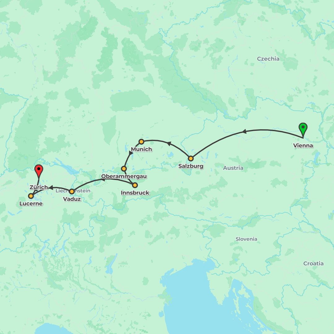 Celebrate the season on a festive journey through Austria, Germany, Liechtenstein and Switzerland, exploring charming cities and Christmas markets from Vienna to Zurich with alpine scenery and cultura