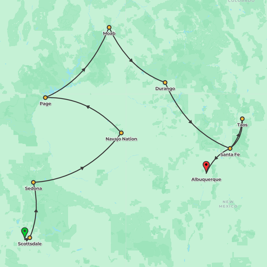 Discover Grand Canyon, Monument Valley and Moab’s arches en route from Phoenix to Santa Fe, then cap your adventure at the Albuquerque Balloon Fiesta.