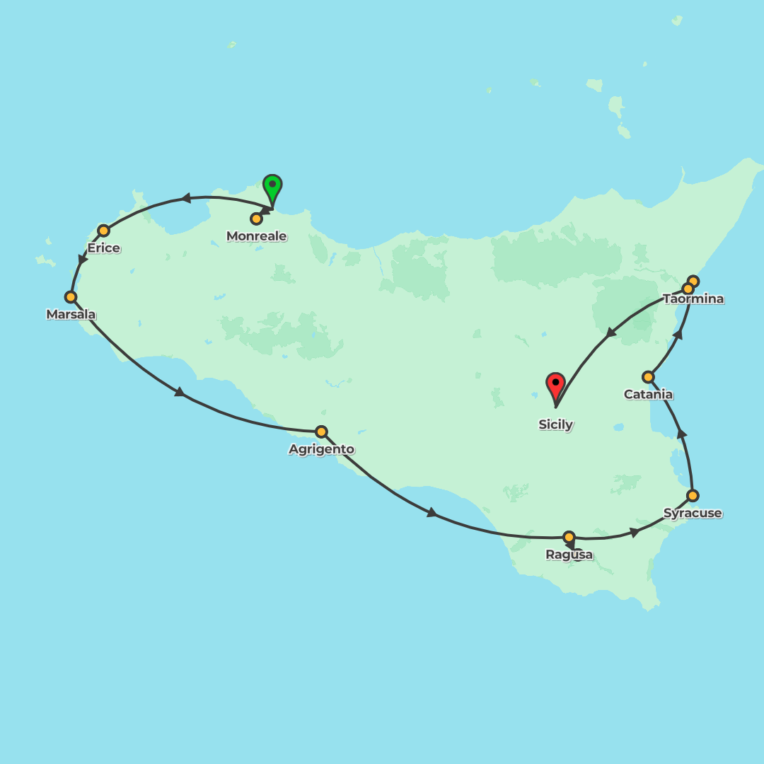 Journey across Sicily from Palermo to Catania, combining iconic sites, local cultural experiences and delicious cuisine with guided visits and free time to explore.