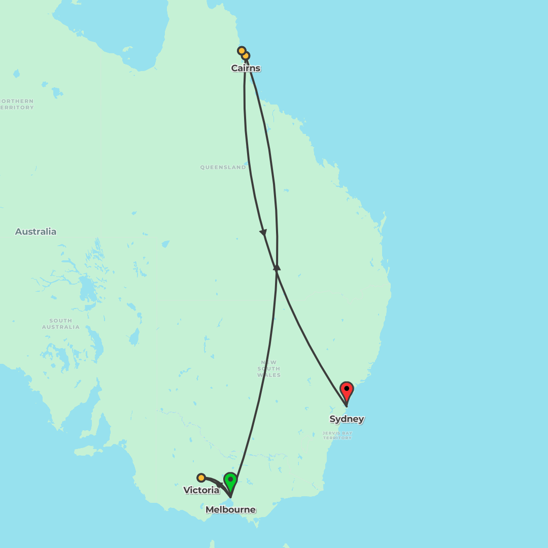 Discover Australia’s East Coast across Melbourne, Cairns, and Sydney with guided highlights, reef cruising, and time to explore at your own pace.