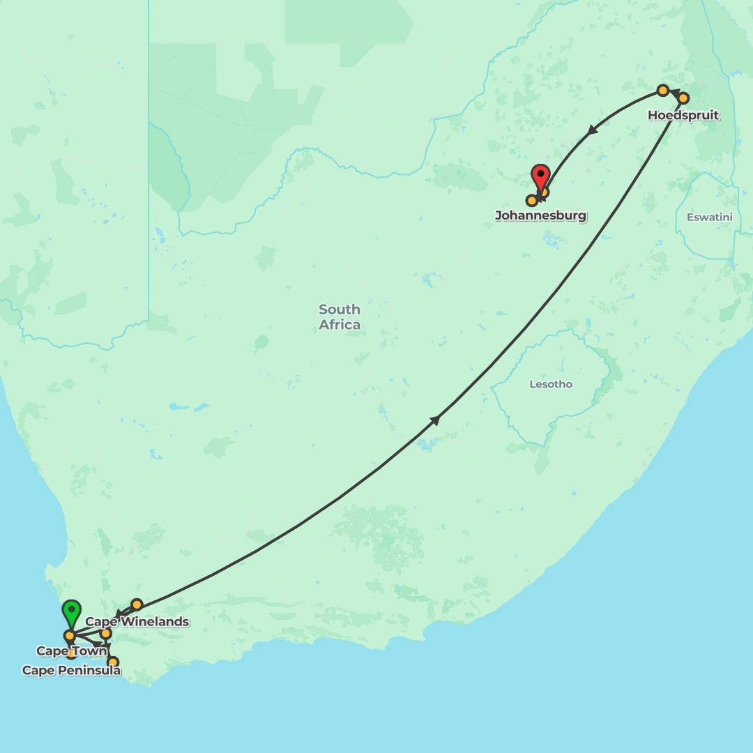Discover Cape Town’s coast and winelands, a Karongwe safari, and Johannesburg’s history on a small‑group South Africa journey from Cape Town to Johannesburg.