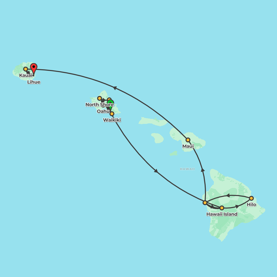 A guided, multi-island Hawaii journey across Oahu, Hawaii Island, Maui and Kauai with included inter-island flights, iconic sights and resort stays.