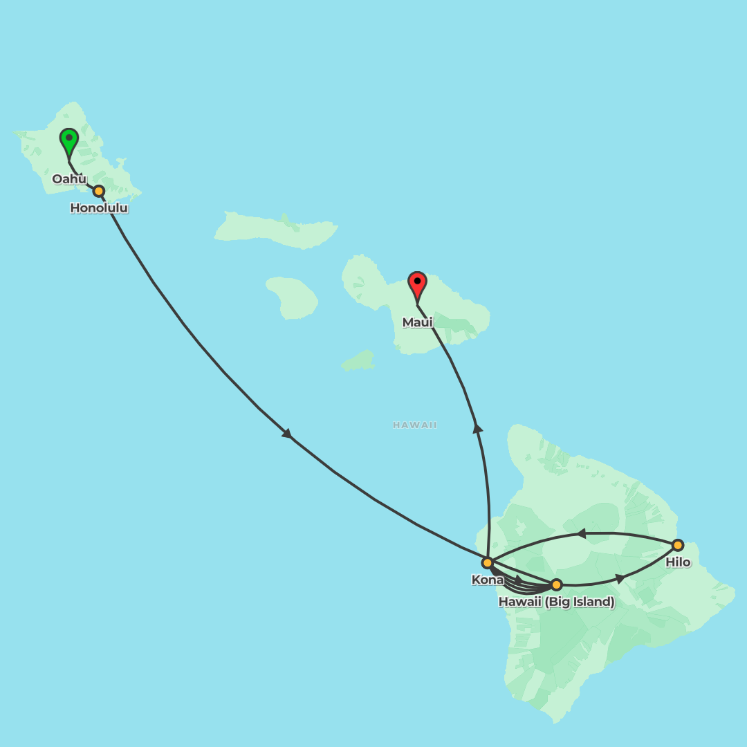 Experience Honolulu, Pearl Harbor, the Big Island’s volcanic wonders and Kona coffee, then unwind on Maui’s beaches and ʻĪao Valley, capped with a traditional luau.