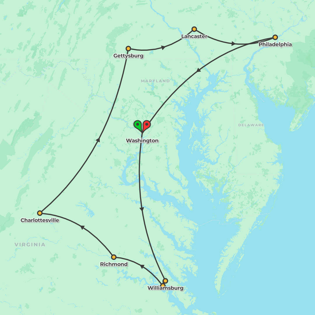 Uncover America's past on a guided journey from Washington, D.C. through Virginia's colonial landmarks and Gettysburg to Philadelphia, with cherry-picked hotels, expert guidance and special cultural e