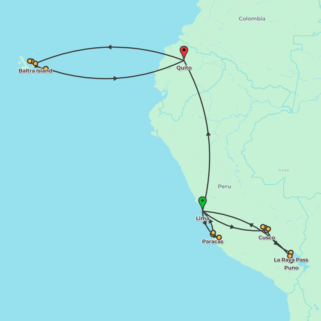 Experience Peru’s highlights—from Lima and the Sacred Valley to Machu Picchu and Cusco—then discover Quito and embark on a Galápagos cruise aboard the Galápagos Legend.