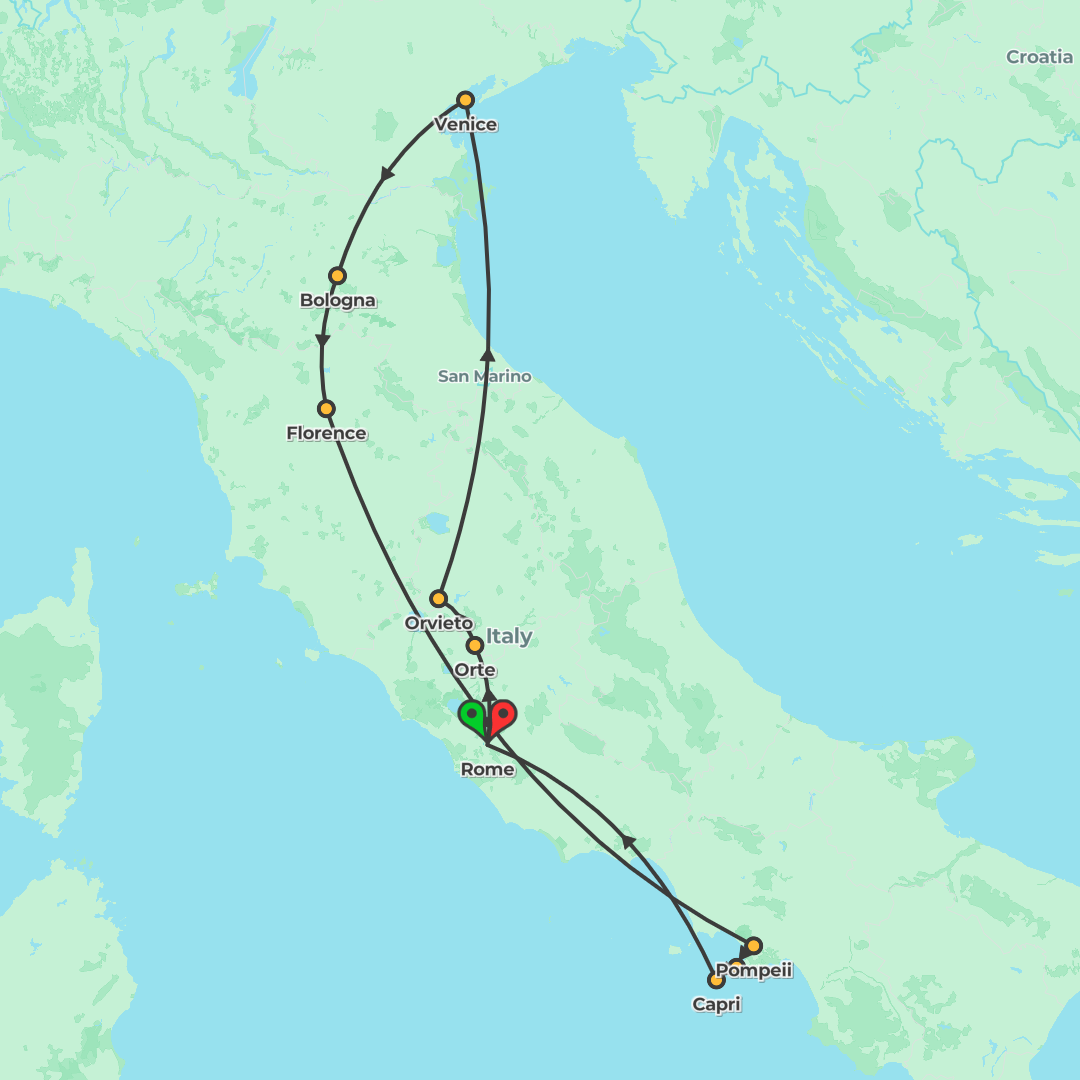 Unveil Italy’s timeless charm on a 10-day journey from Rome through Florence, Venice and the Italian Lakes to Sorrento, with city orientations, Local Guides and many included breakfasts.