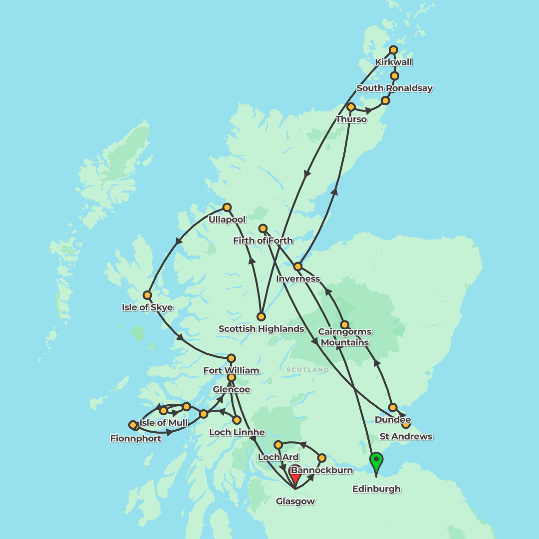 Discover Scotland’s rugged Highlands, storied lochs and castles on a seven‑day journey from Glasgow to Edinburgh, with guided city highlights and flexible Choice Experiences along the way.