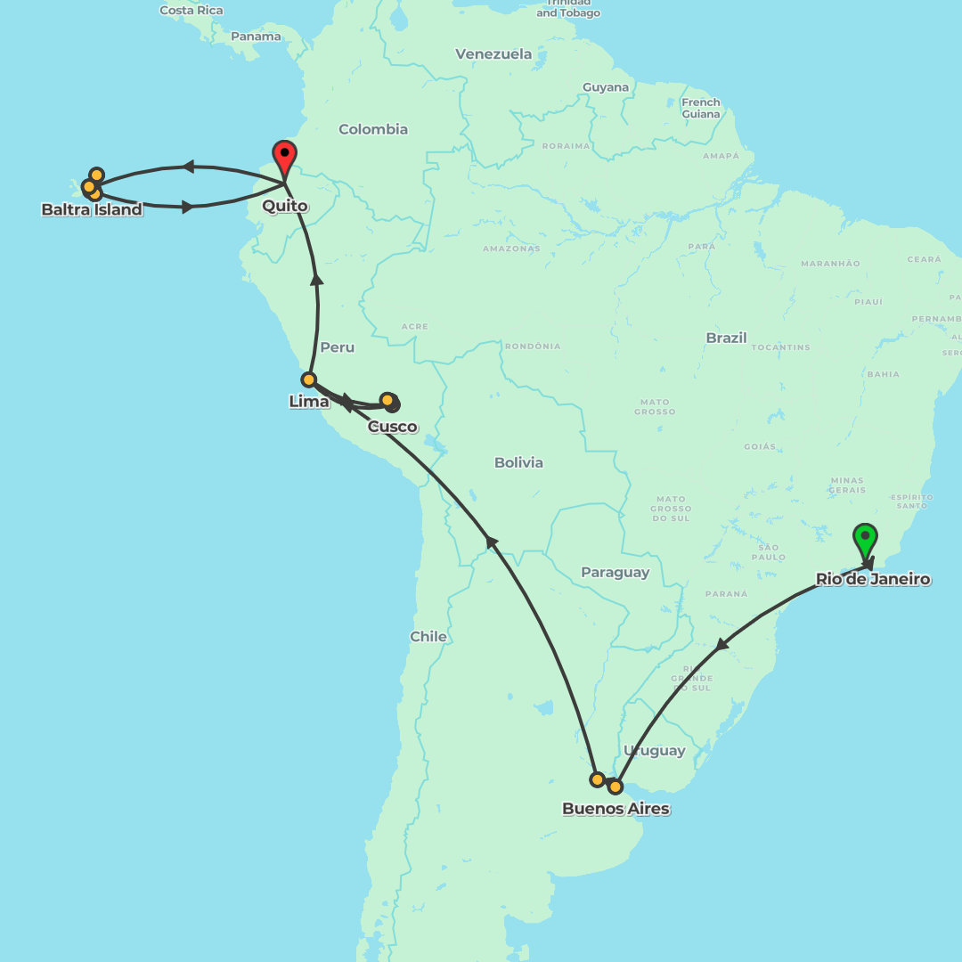 Explore Rio, Iguazú, Buenos Aires, Lima, Cusco and Machu Picchu before cruising the Galápagos on the M/V Galápagos Legend for an unforgettable South American adventure.