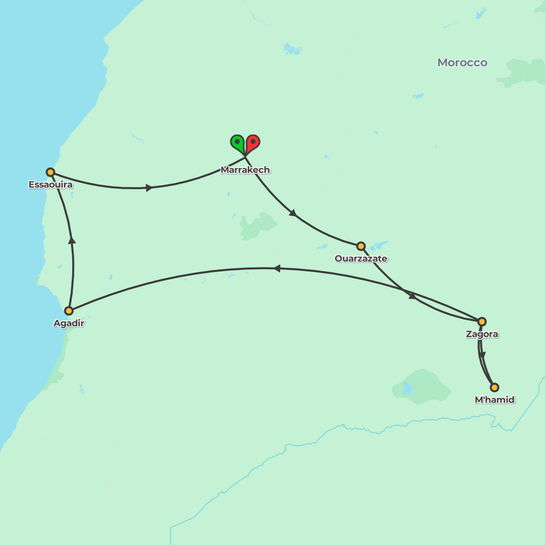 Experience Morocco’s highlights with 4-star stays, a Sahara desert camp, and guided adventures from Marrakech to the coast.