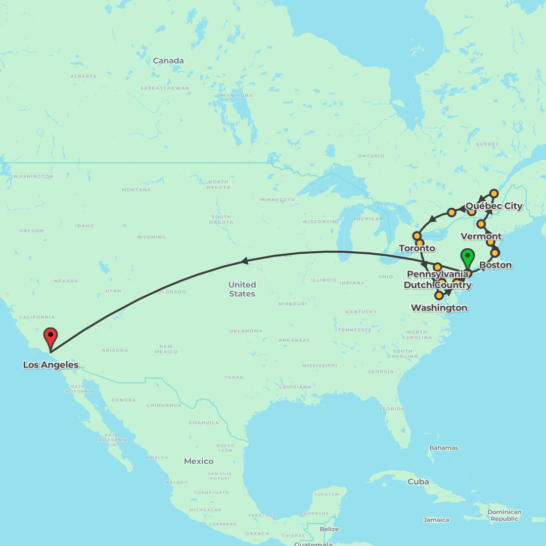 Discover the best of Eastern Canada and the USA on a 14-day guided journey from Toronto to Washington, D.C., taking in Niagara Falls, Montreal, Quebec City, Boston and New York City with memorable loc