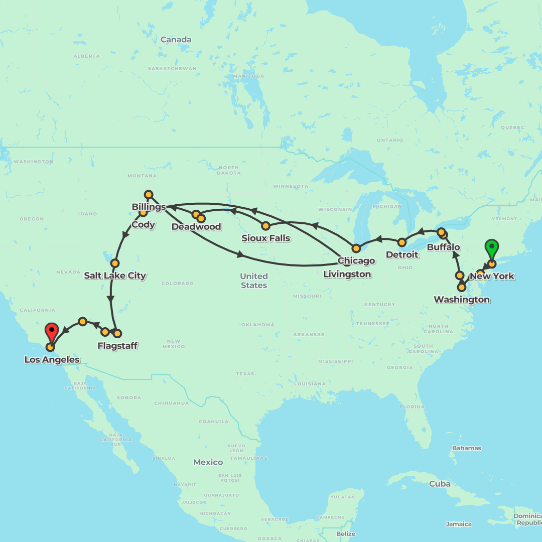 Journey from New York to Los Angeles by coach with expert leaders, iconic cities and breathtaking national parks along the way.
