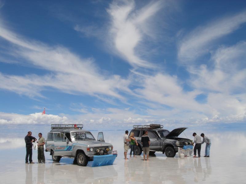 Explore the vast Uyuni Salt Flats.