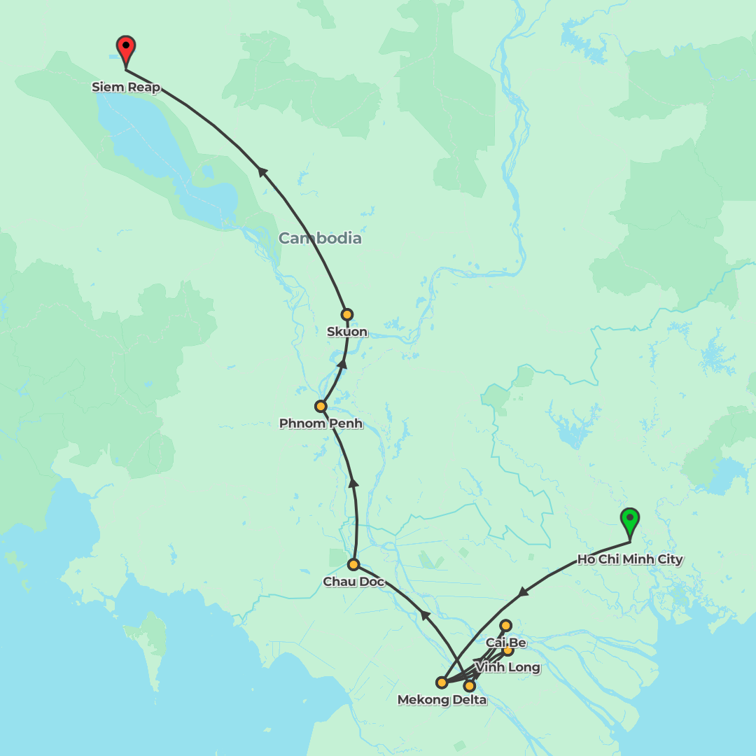 A 12-day small group journey from Saigon through the Mekong Delta to Phnom Penh and the temples of Angkor, blending city highlights, river travel and relaxed temple exploration.
