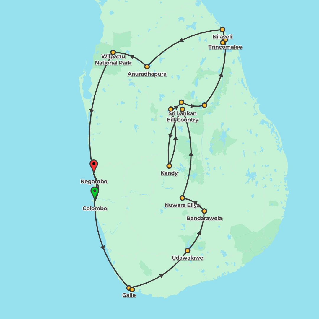 Experience Sri Lanka’s ancient cities, tea-clad hills, wildlife-filled parks and serene beaches on a two-week small group tour travelling by road and rail with time to relax and explore.