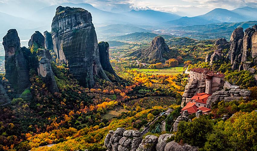 Witness Meteora’s cliff-top Byzantine monasteries.