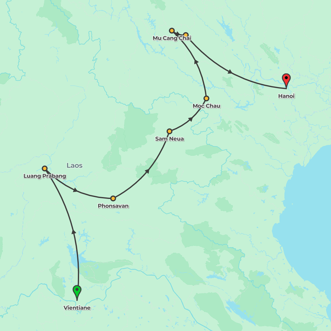 An escorted 2-week small group adventure through Laos and Vietnam’s remote mountains and hill-tribes, from Vientiane and UNESCO-listed Luang Prabang to Hanoi, with scenic overland travel and rewarding hikes.