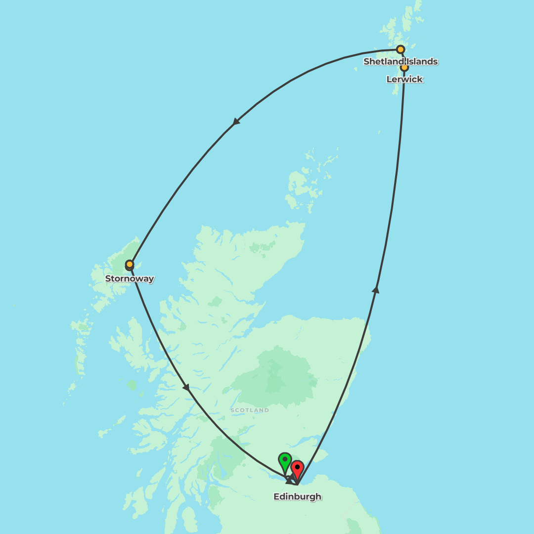 Set sail from Rosyth to explore the Scottish Isles with calls at Lerwick and Stornoway and relaxing time at sea.