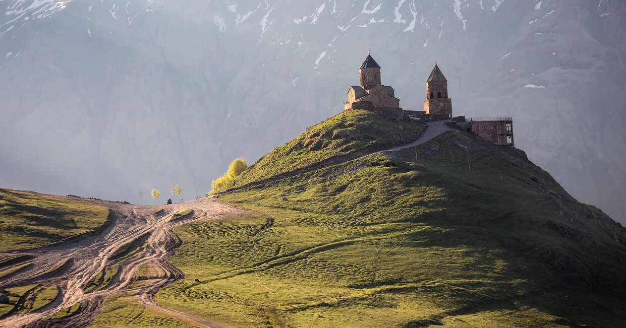 Visit Gergeti Trinity Church with views of Mount Kazbegi.