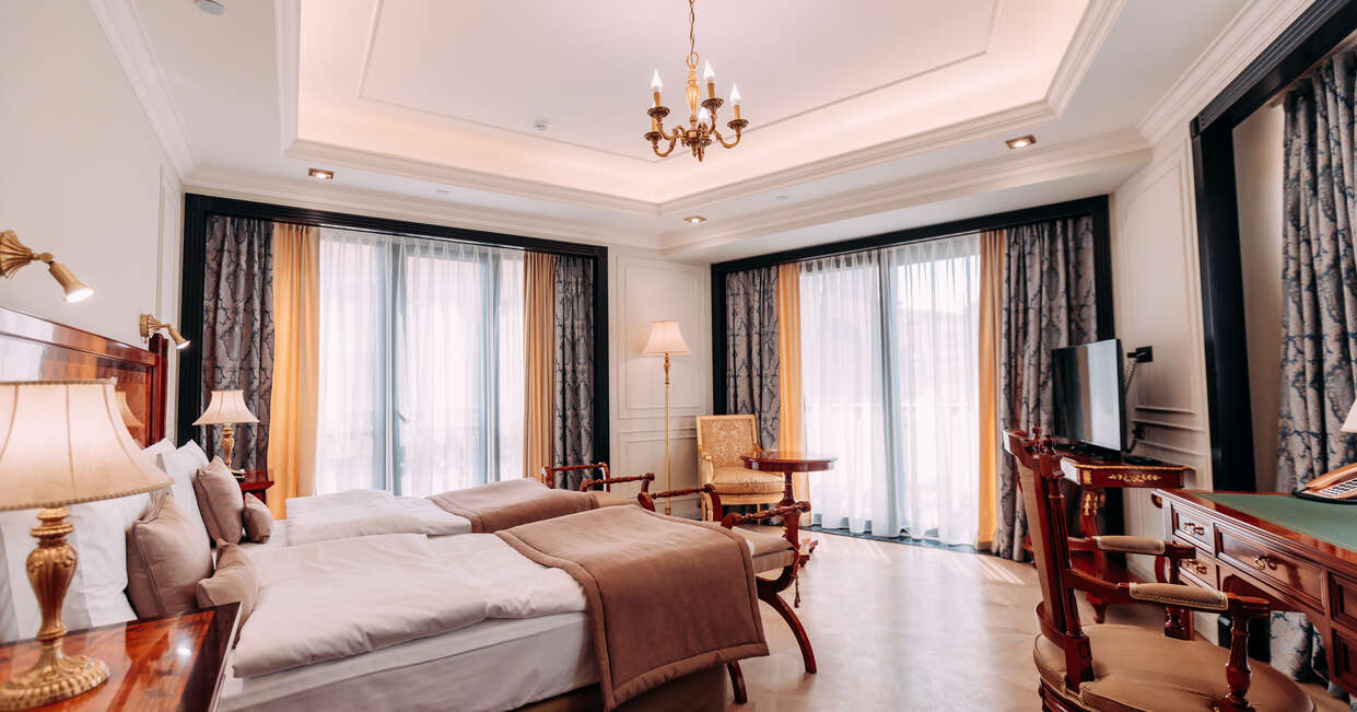 Stay in Qarvasla Hotel (or similar) in Tbilisi, Tsinandali Estate, A Radisson Collection with its infinity pool and vaulted bar, Rooms Hotel Kazbegi with indoor pool, Crown Plaza Borjomi's riverside spa, Apricot Grand Hotel Gyumri, and Golden Palace Hotel Yerevan with rooftop restaurant overlooking Republic Square.