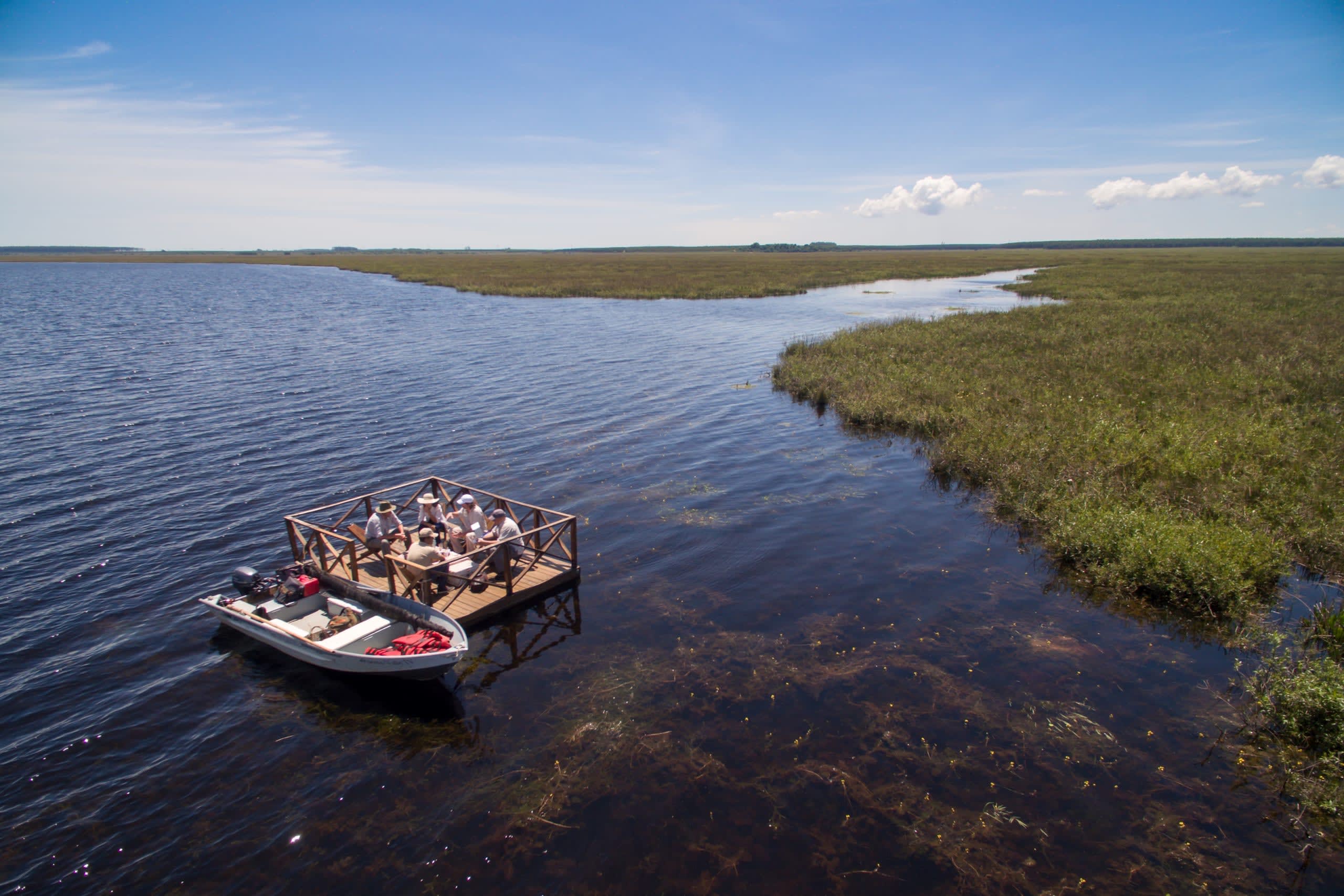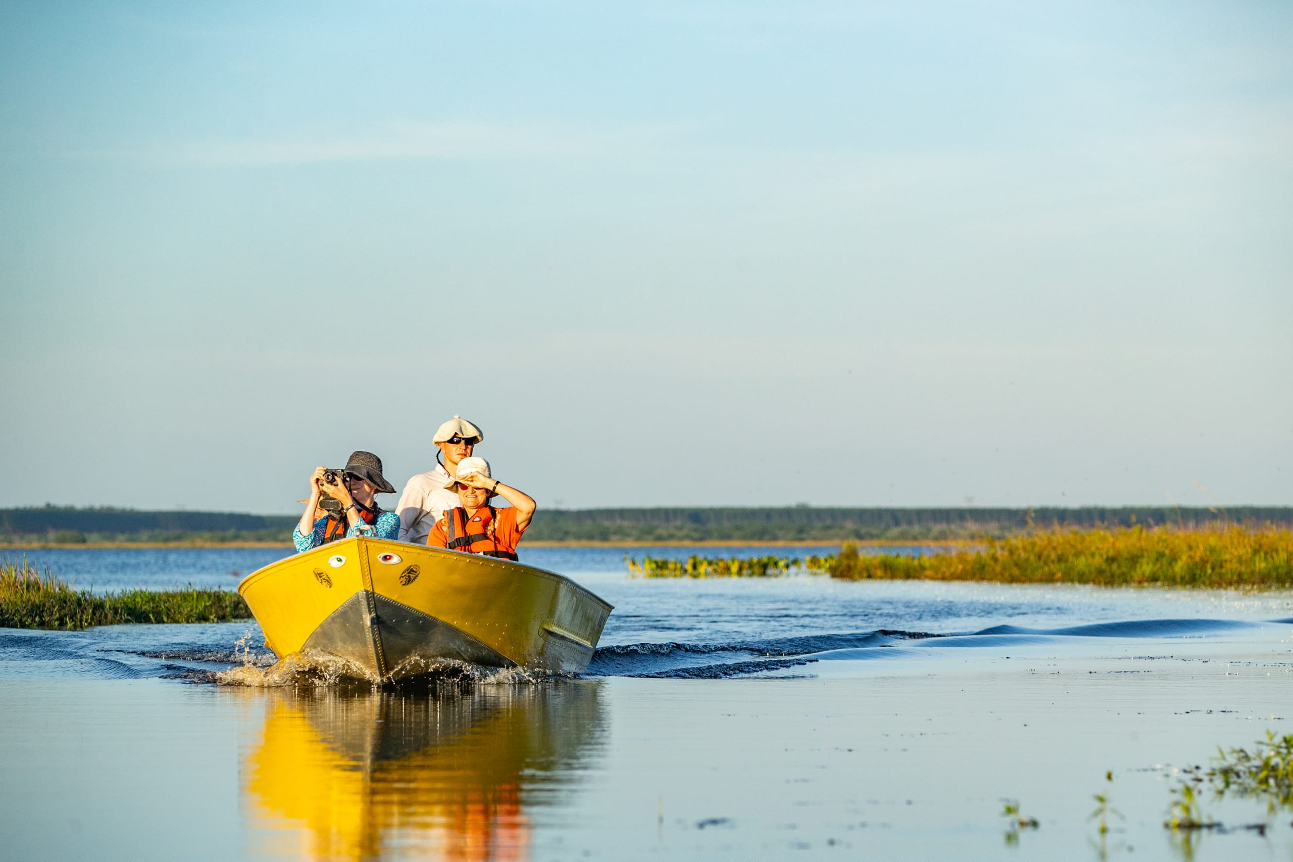 Glide by motorboat through Ibera Wetlands to Laguna Valle.