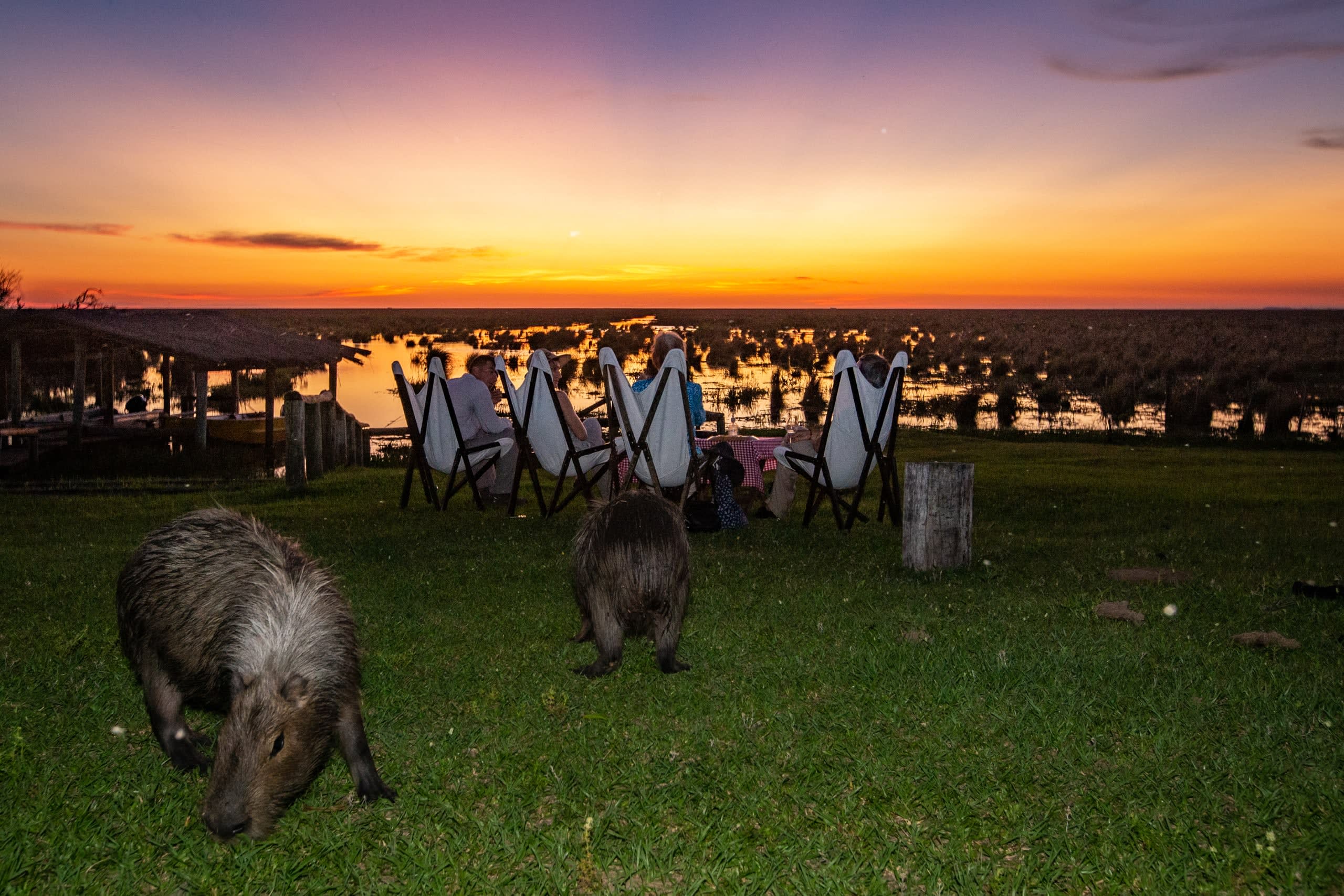 Spot caiman, capybaras, marsh deer, and diverse birdlife in Ibera.