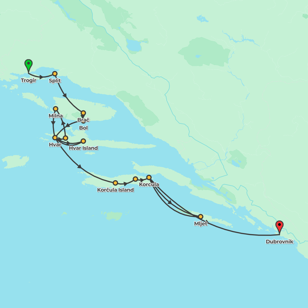 Self-guided island-hopping walks on Croatia’s Dalmatian Coast from Trogir to Dubrovnik, exploring Brac, Hvar, Korcula and Mljet with UNESCO-listed highlights along the way.