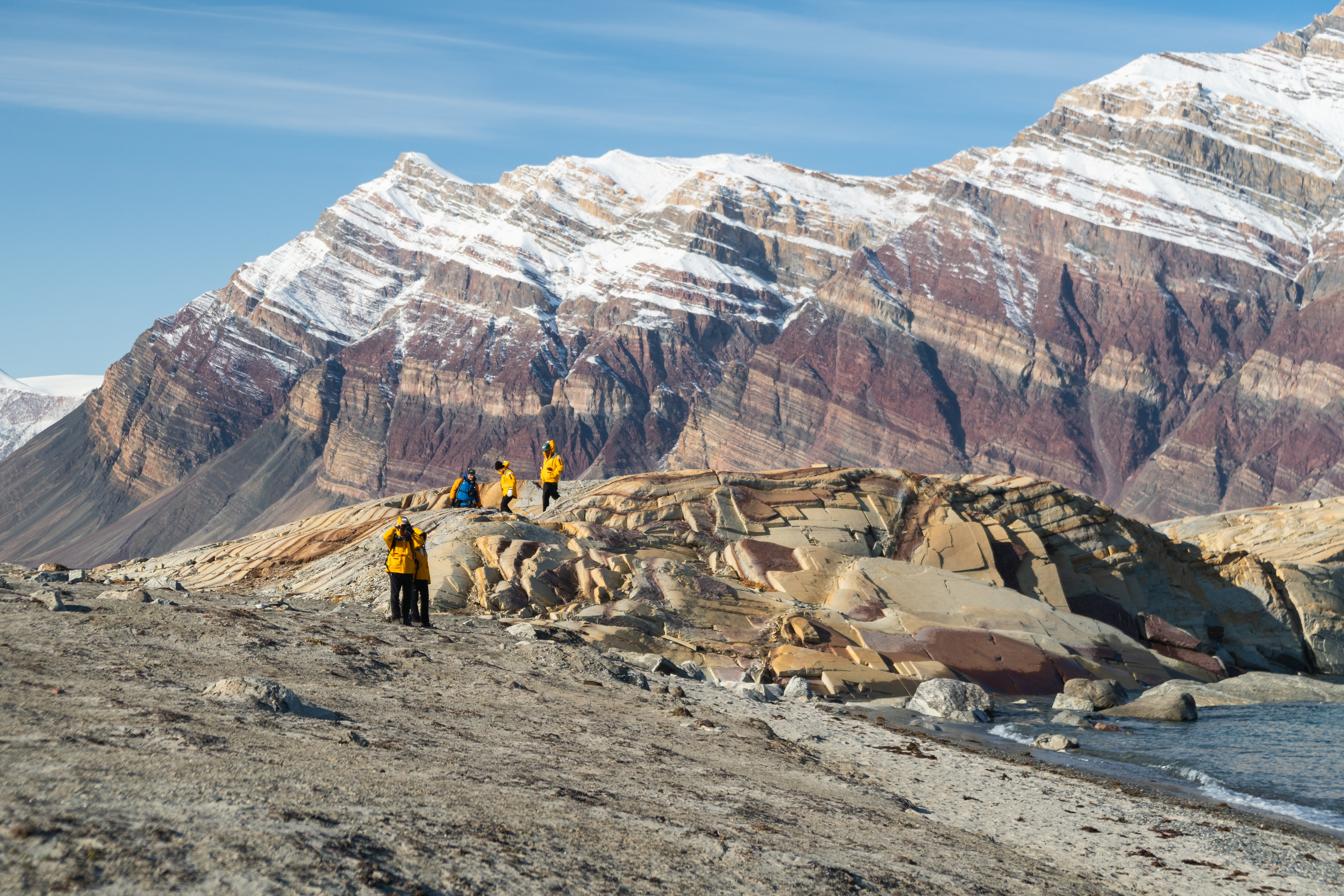 Cruise the 110km Kong Oscar Fjord with famously bright sandstone.